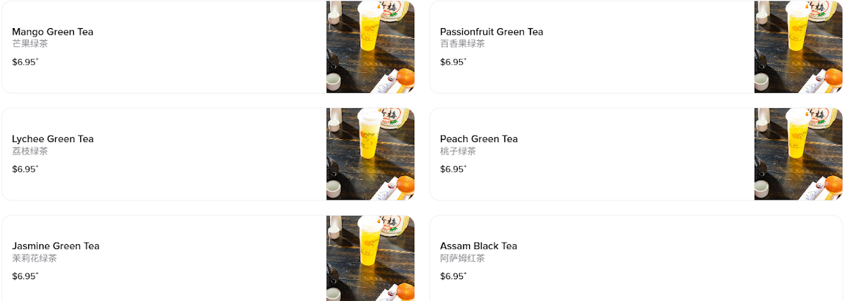 - Beverages: Fresh Fruit Teas and Bubble Milk Teas in multiple flavors